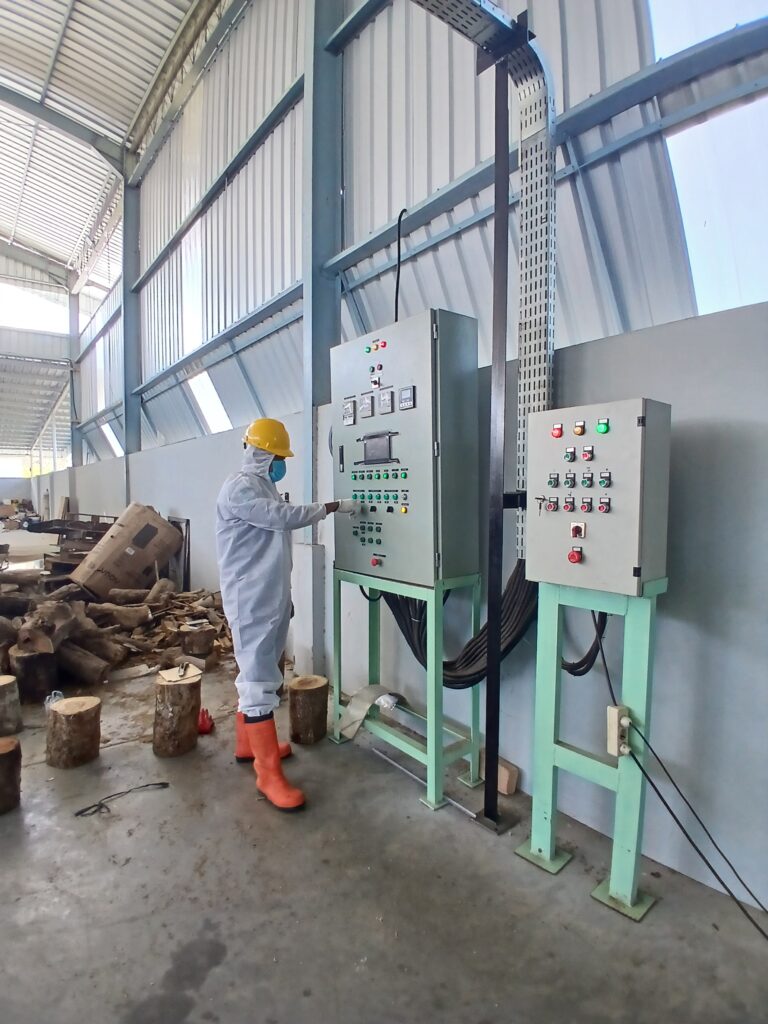 Pengolahan limbah menggunakan mesin incinerator yang ramah lingkungan dan hemat energi.